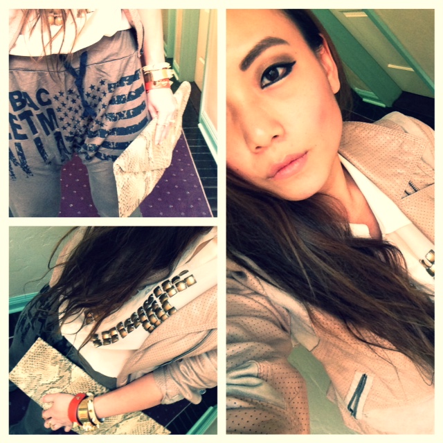 It's been trending for years now, and it's not going anywhere, the color: Nude. Even on fair dull skin to dark skin, there's something about this color that brings a calm, clean, and simple look to every outfit. I love this top because it's a simple sleeveless design with the perfect embellishment of bronze trims in the all so trendy cross design. It adds just the right amount of accessories to my outfit without having to wear earrings or a statement necklace. Pairing up my nude jacket with the trendy harem pant, i put together a simple, clean, and very comfortable outfit for work. Also can be worn for any errand day, shopping day, and casual outting. I was feeling very under the weather so forgive my tiredness!